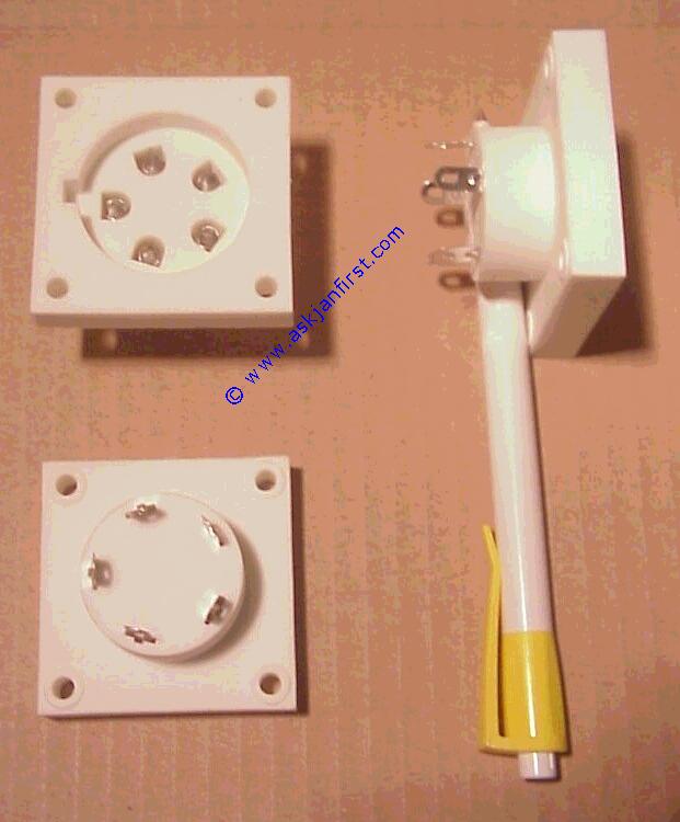 FAS061 | Fassung für Poströhren fünfpolig, laufende Fertigung, Keramik, hervorragende Qualität. Lieferung mit mikrofoniemindernden Gummiunterlagen, die gleichzeitig eine mechanisch spannungsfreie Montage ermöglichen. Diese Fassungen haben keine fest eingenieteten, sondern bewegliche Kontakte, dadurch werden Passungsprobleme im Rahmen der teilweise recht hoen Sockeltoleranzen vermieden. | Socket for Siemens Post-tubes 5 pin new stock ceramic, high quality, comes with rubber washers for stress free low microphony mounting. This version´s contacts are not riveted but mounted in a way that tolerances of the tube bases can be compensated so any post tube will fit easily | Siemens Socket / Embase Post 5 pour C 3 d etc. Ceramique, haute qualité | 4,00 | 4,76 |