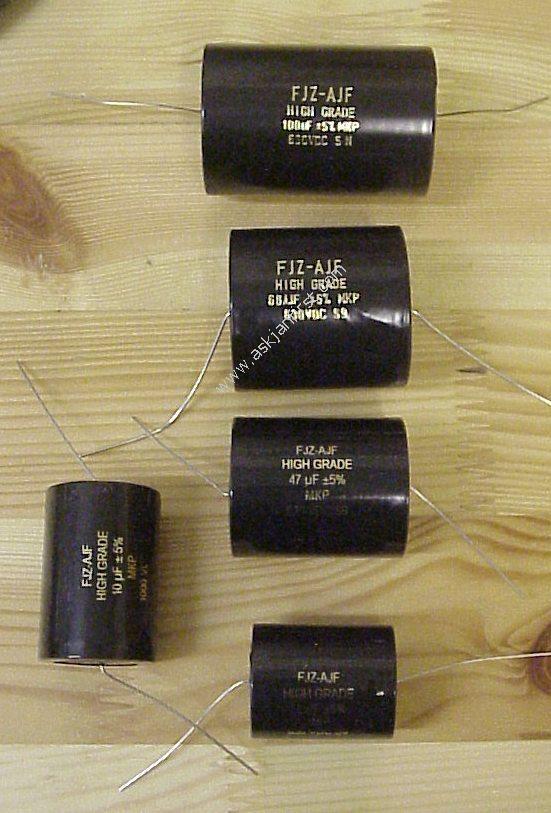 La gamme de capacitance entre un et 10 uF comme Capa High Grade. Fils axiaux de cuivre douce étainé pour soudage facile. Très bien pour les filtres de fréquence dans les haut parleurs, en remplacant les chimiques etc. 630VDC /CD, Fabrication Allemande comme tous nos High Grade caps. |