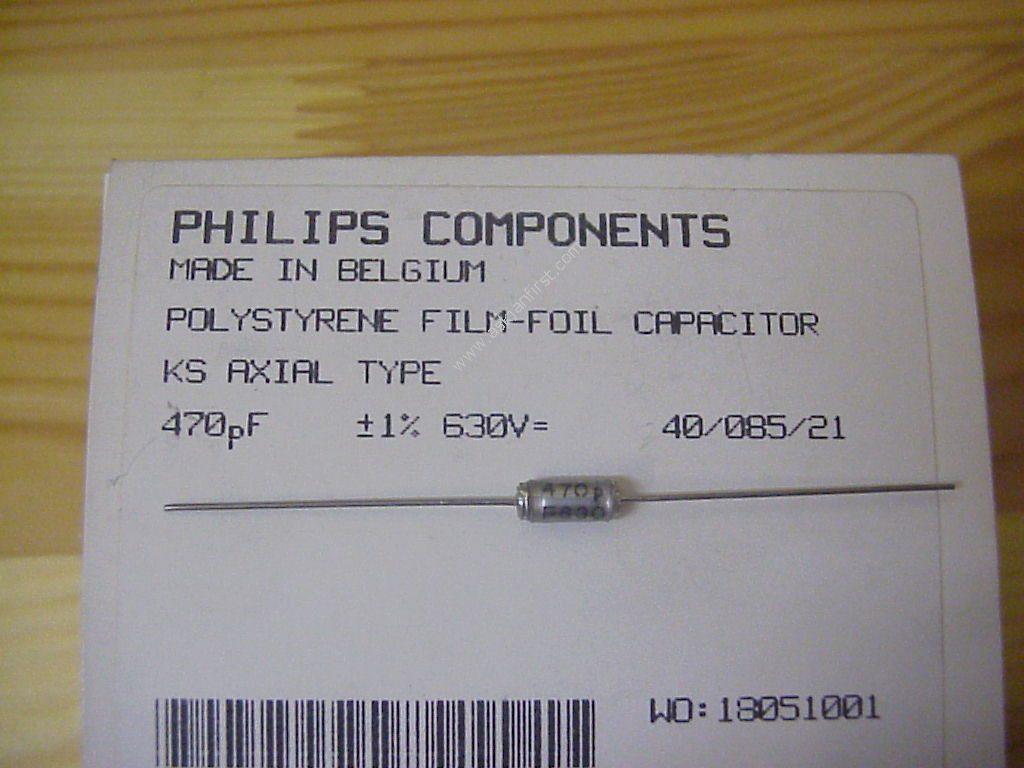 470 pF: Polystyrene, 630 V 5%, Marque Philips | 0,69 | 0,82 | Philips