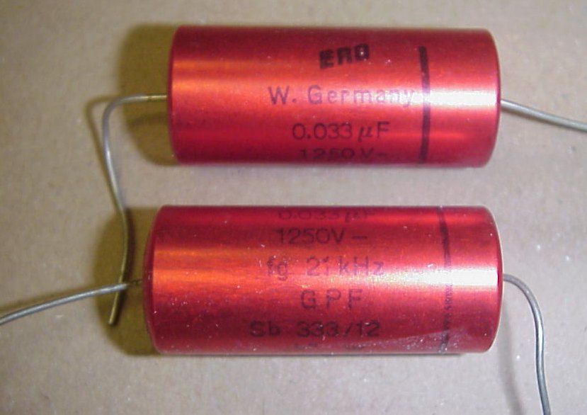 KON8838 | Qualitativ hochwertiger ERO 33nF 1250 V Booster gebaut um 1967, Neuware, eingegossen in Alubecher, dadurch sehr schöngeschirmt. | ERO Roederstein high quality paper cap used in TV pulsecircuits. 0.033 MFD 1250 V | ERO Roederstein papier-film aluminum 33nF 1250 V | 2,20 | 2,55 |