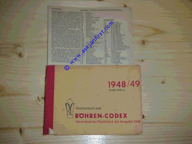 von 1949, absolut neuwertig, unbenutzt. | Tube data book: "pocket tube codex", contains