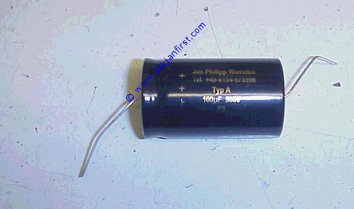 | Info zu Einzelelkos: Diese haben alle Minus an Lötfahne "--" und Plus an Lötfahne "1","2"oder"3". Der Becher ist nicht der Minusanschluss, er darf aber an Minuspotential liegen oder muss andernfalls isoliert montiert werden. (Scheibe) | Info about single section electrolytics: Those all have minus on solder lug marked "--", Positive is on the other lug. The can is NOT the minus connection. The can may be tied to minus or installed isolated (with a washer). | Information; Minus est sur la broche marqueé "--", plus sur l´autre broche. la boîte peut être lié au minus mais n´est pas le brochage négativ se même. Ou on isole la boîte avec une rondelle. | ||||||