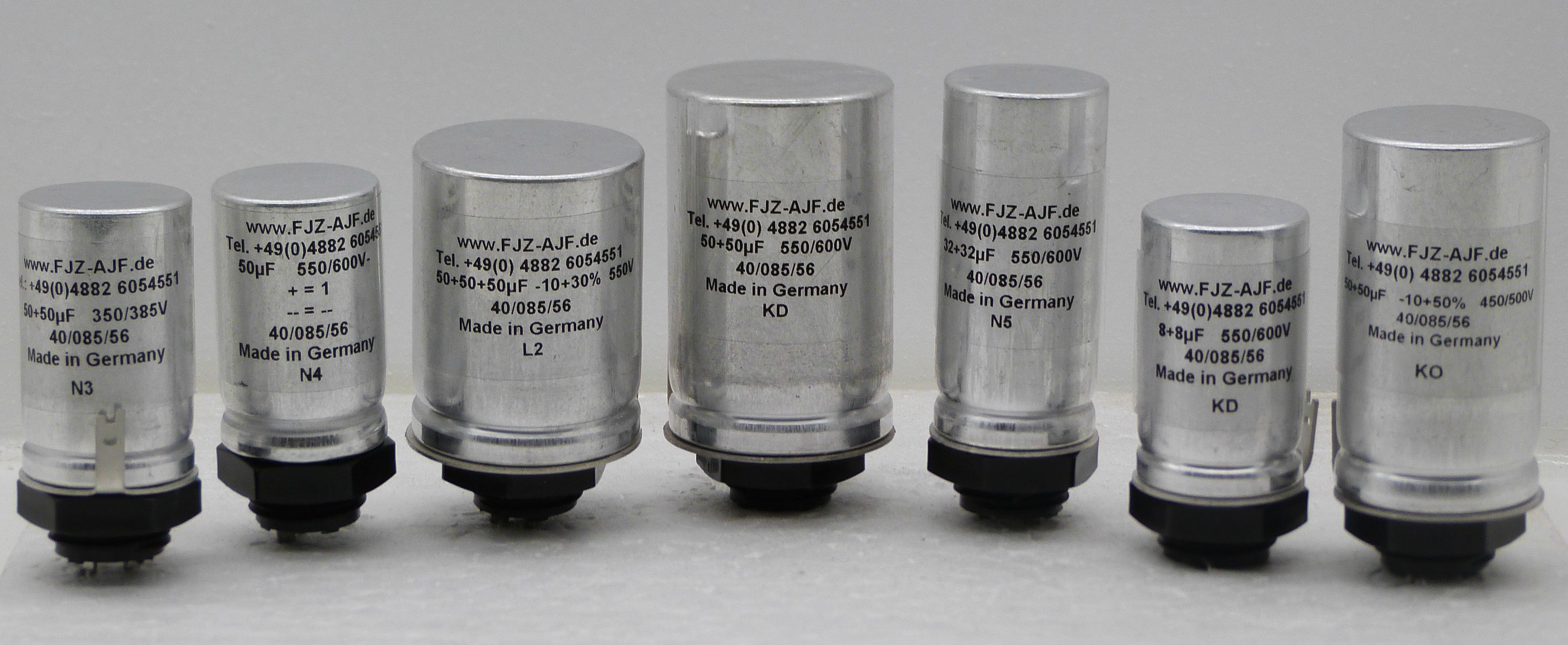 von FTCap Hersteller hochwertiger Hochvoltelkos mit Fertigung in Deutschland | Electrolytics made by FTCap | Cond. electrochimiques de FTCap | ||||||