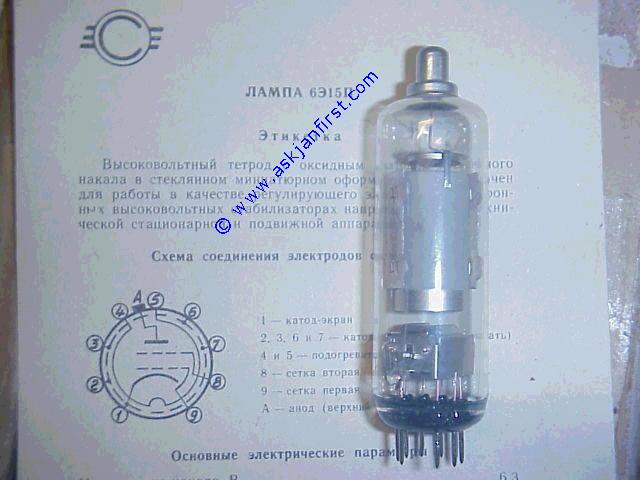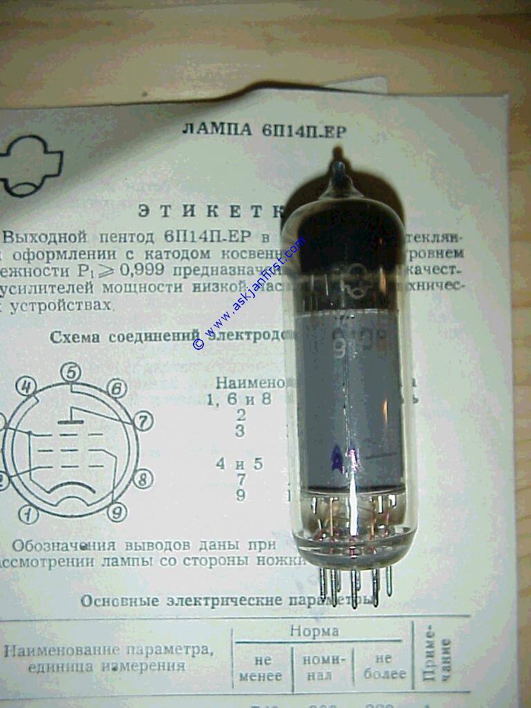 |   | info | 12 BH 7 A | SU | n | Wir können Ihnen alternativ die sehr gute, alte russische 6 N 6 P anbieten. Siehe Liste weiter unten bei 6 N 6 P | we can supply very high quality ancient Russian 6 N 6 P which is a very good version of the 12 BH 7 A. See list for 6 N 6 P | Nous pouvons offrir le tube Russe 6 N 6 P a haute qualité. N´est pas exactement égale du E 182 CC mais s´approche bien. | Antiquität, Infos hier | |||