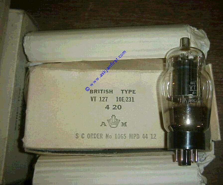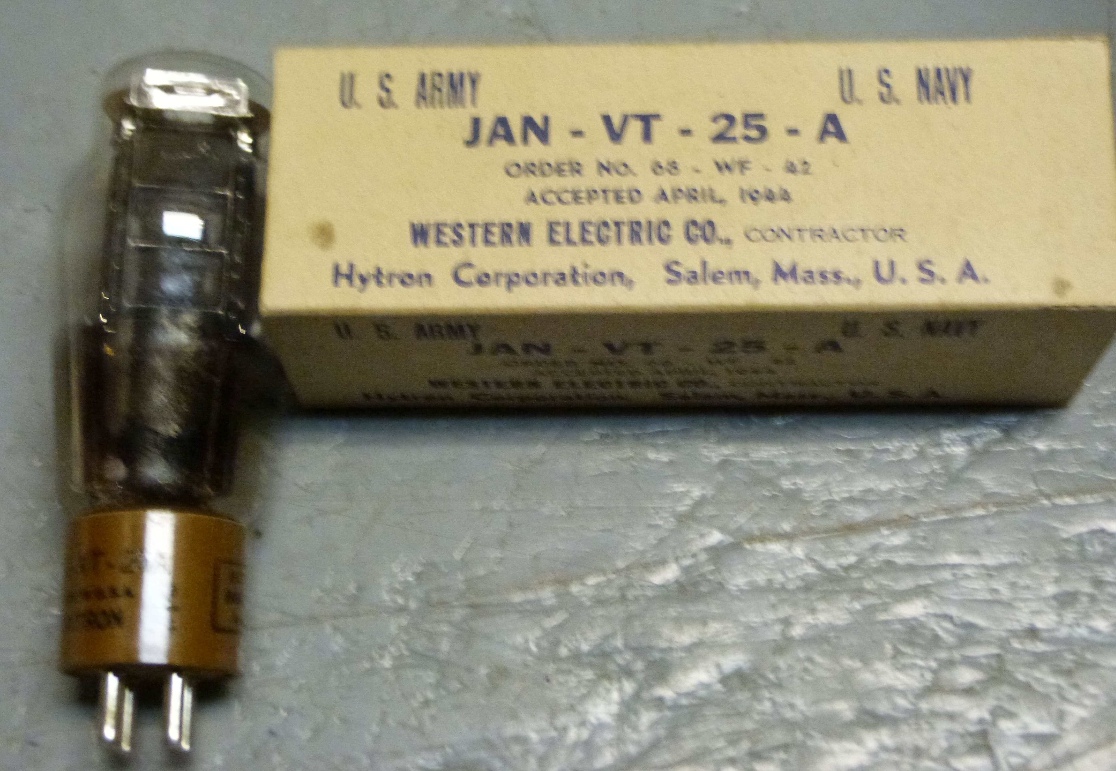 |   |   | 7 | 10Y /VT25A | SY | no | 2. Weltkriegs-Fertigung, Sylvania, VT25A in nagelneuem Zustand, ovp, beste Qualität, siehe Fotos | WWII- production Sylvania VT25A, see photos, mint condition, NOS, NIB | Production Sylvania, 39-45, condition excellente, emballage originale. | call | a.A. | Antiquität, Infos hier |