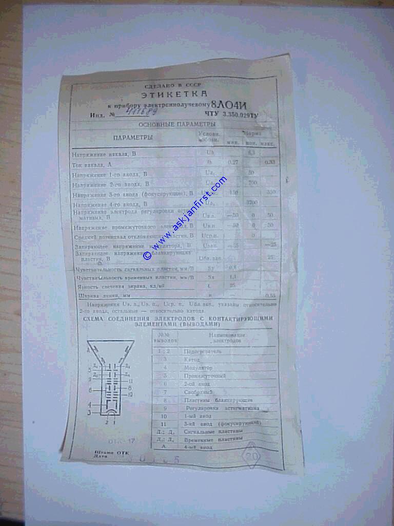 |   |   | 1 | 07 s 1 | T | s | alte Zweikanal-Osziröhre | vintage WW II scopetube | call | a.A. | Antiquität, Infos hier | |