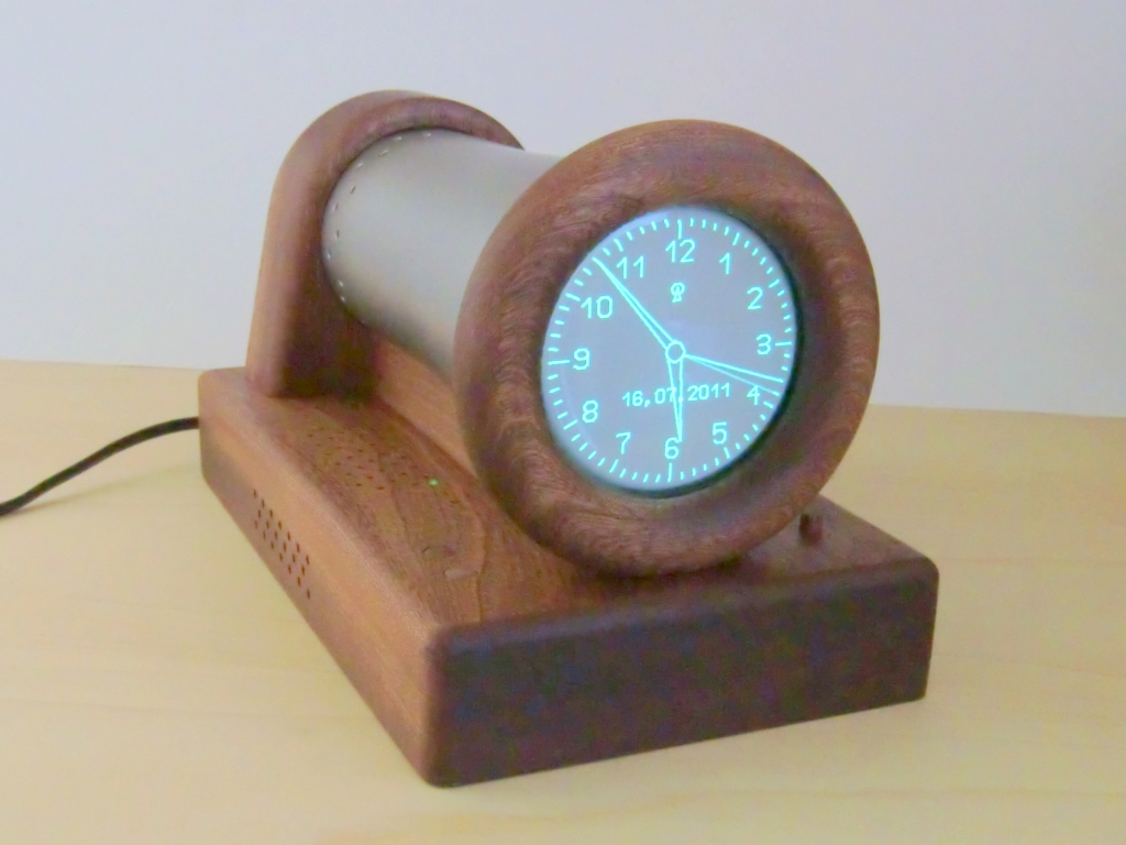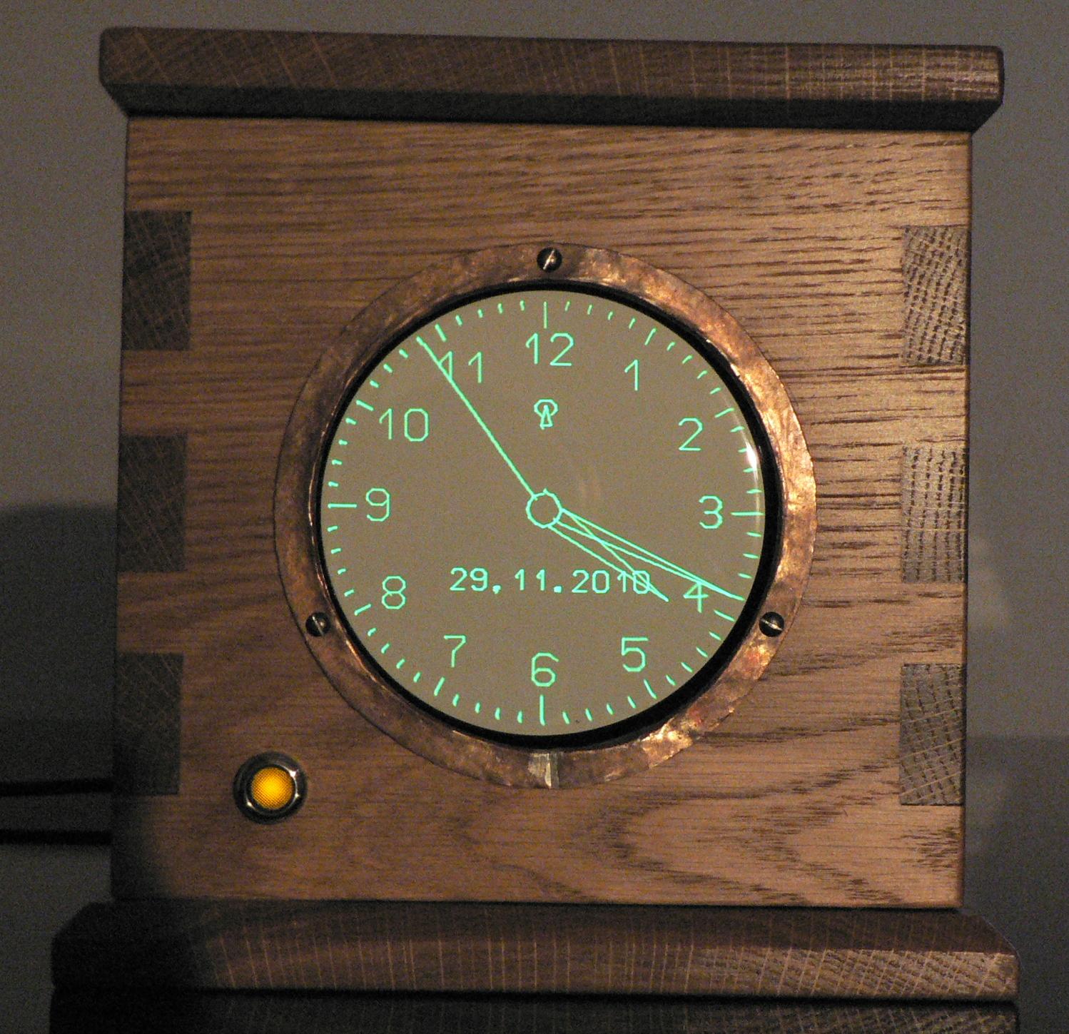 Ein DCF-Modul zum Empfang des Zeitsenders, optional, die Uhr läuft