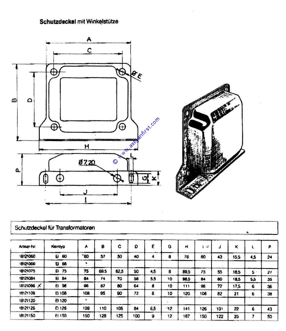 |     |   | TRAZ12 | Trafoabdeckhaube für EI- Kern.